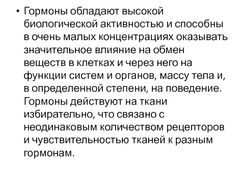 Гормоны обладают высокой биологической активностью и способны в очень малых