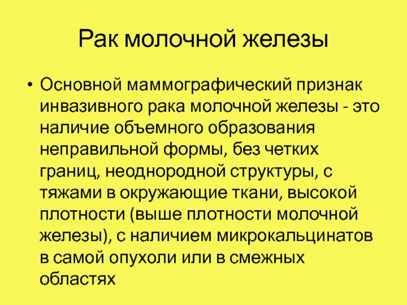 Основным рентгенологическим признаком внутрипротокового неинфильтрирующего (неинвазивного) рака является