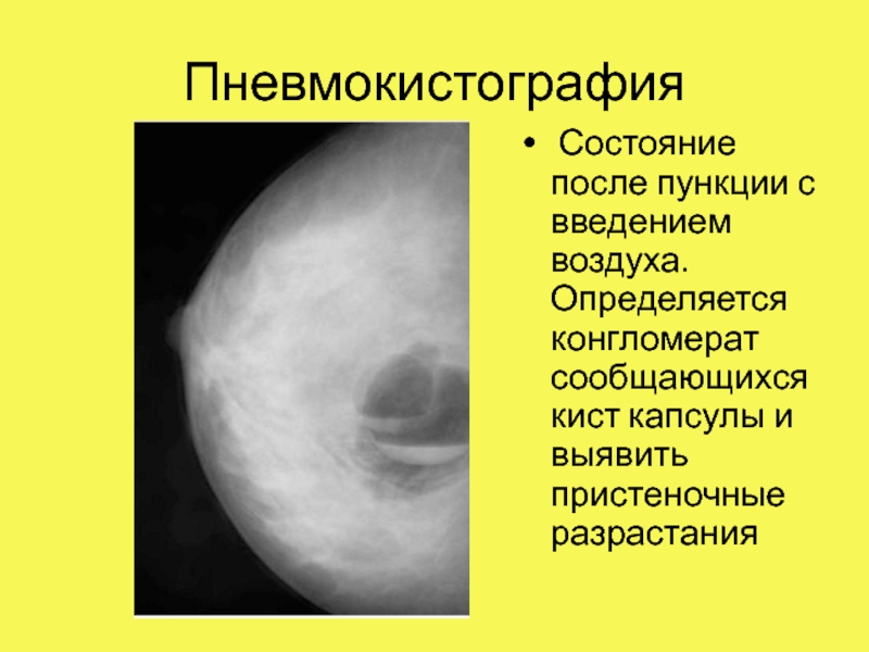 Слайд 17Пневмокистография- введении воздуха в полость кисты после аспирации ее жидкостного