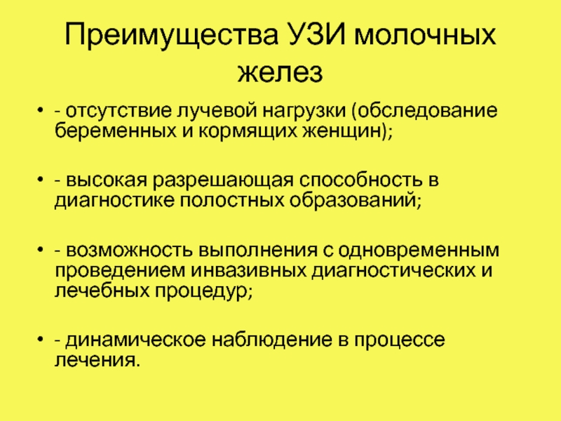 Слайд 21Преимущества УЗИ молочных желез