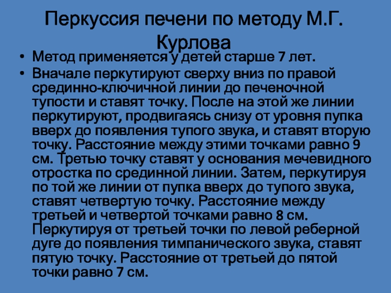 Слайд 40Перкуссия печени по методу М.Г. Курлова