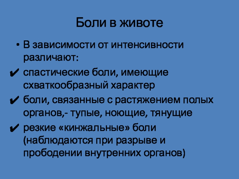 связанные с растяжением полых органов,- тупые, ноющие, тянущие