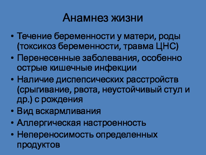 Течение беременности у матери, роды (токсикоз беременности, травма ЦНС)