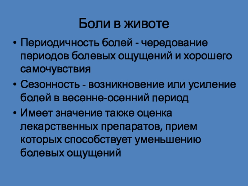 Слайд 5Периодичность болей - чередование периодов болевых ощущений и хорошего самочувствия