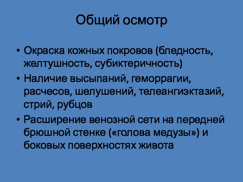 Окраска кожных покровов (бледность, желтушность, субиктеричность)
