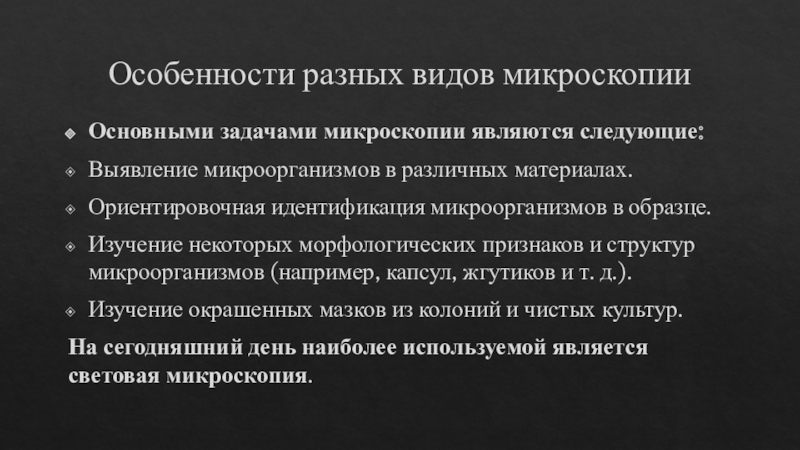 Слайд 2Особенности разных видов микроскопии