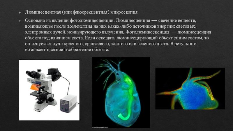 Слайд 8Люминесцентная (или флюоресцентная) микроскопия