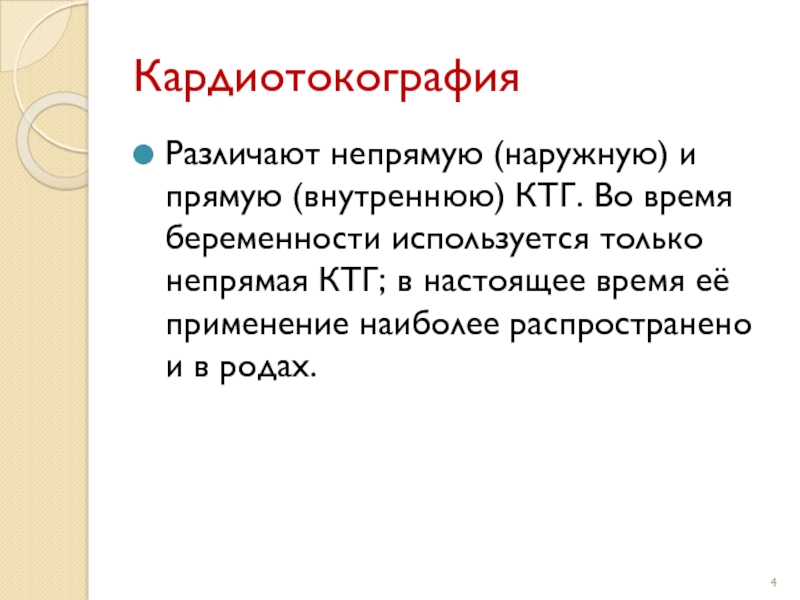 используется только непрямая КТГ; в настоящее время её применение наиболее