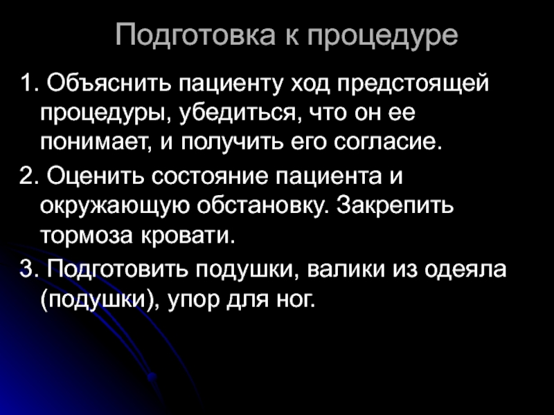 Слайд 41. Объяснить пациенту ход предстоящей процедуры, убедиться, что он ее