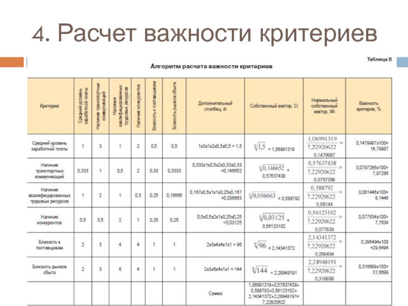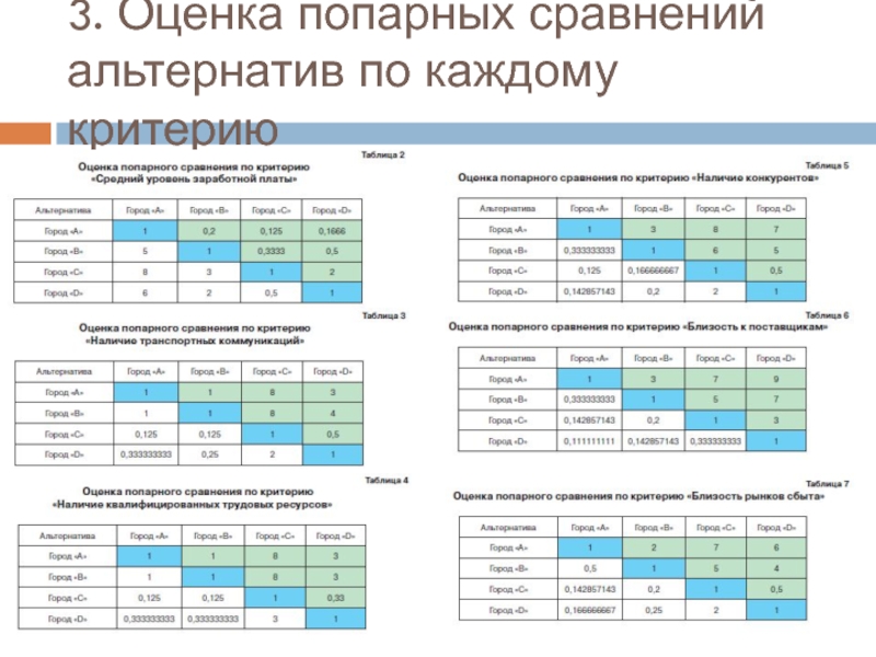 Заданы n критериев оценки имеющихся альтернатив в рамках анализируемой системы.