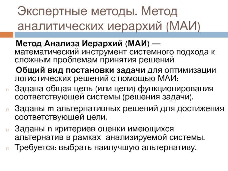 (МАИ) — математический инструмент системного подхода к сложным проблемам принятия решений