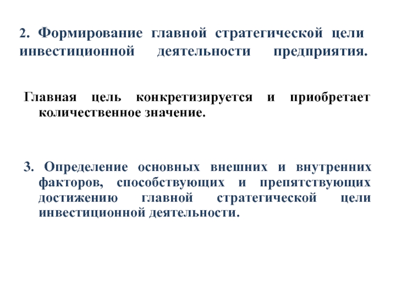 2. Формирование главной стратегической цели инвестиционной деятельности предприятия.