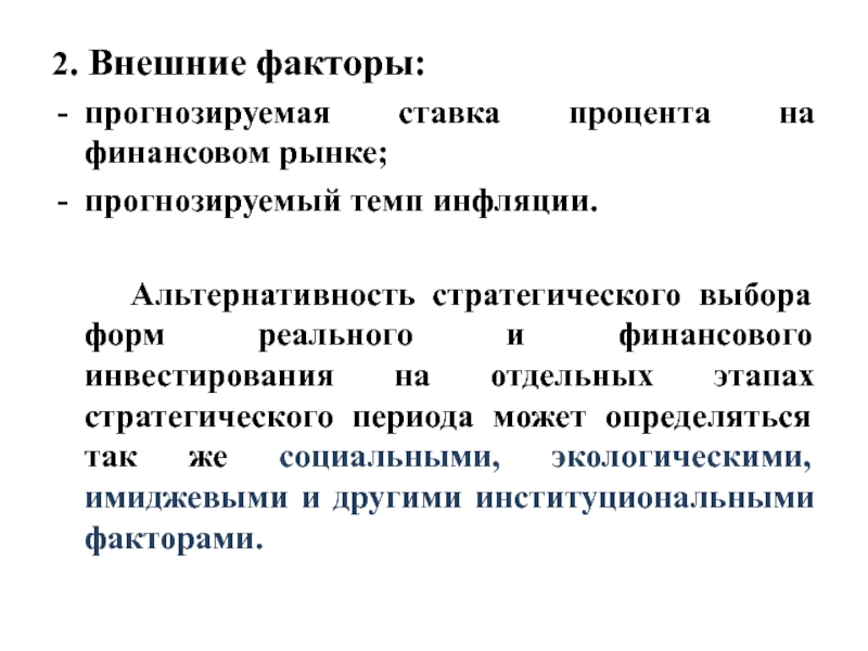 на отдельных этапах стратегического периода может определяться так же социальными, экологическими, имиджевыми и другими институциональными факторами.