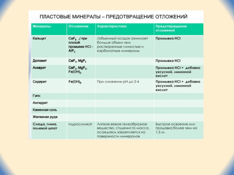взвешенных частиц. Удаление осуществляется глинокислотой, которая проектируется в зависимости от происхождения минералов, поскольку неправильно подобранная кислота может вызывать осадки, которые еще больше заблокируют приток.