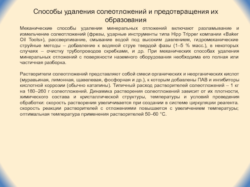 Слайд 13Способы удаления солеотложений и предотвращения их образования
