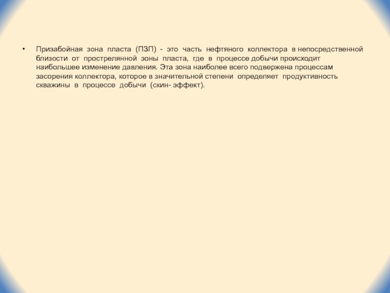 Слайд 3Призабойная зона пласта (ПЗП) - это часть нефтяного коллектора в