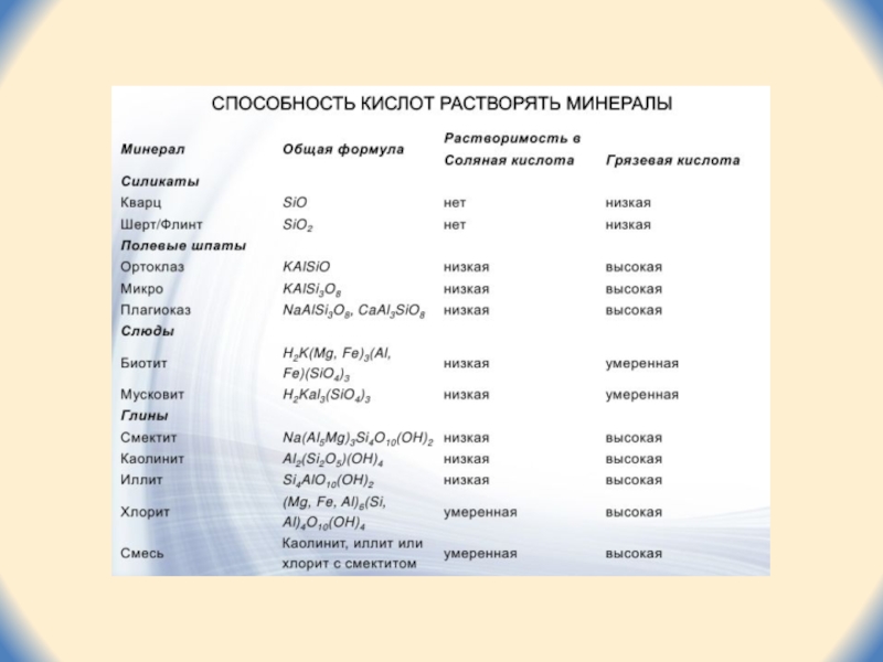 кислоты с силикатными материалами, кварцем и каолином терригенного коллектора происходит