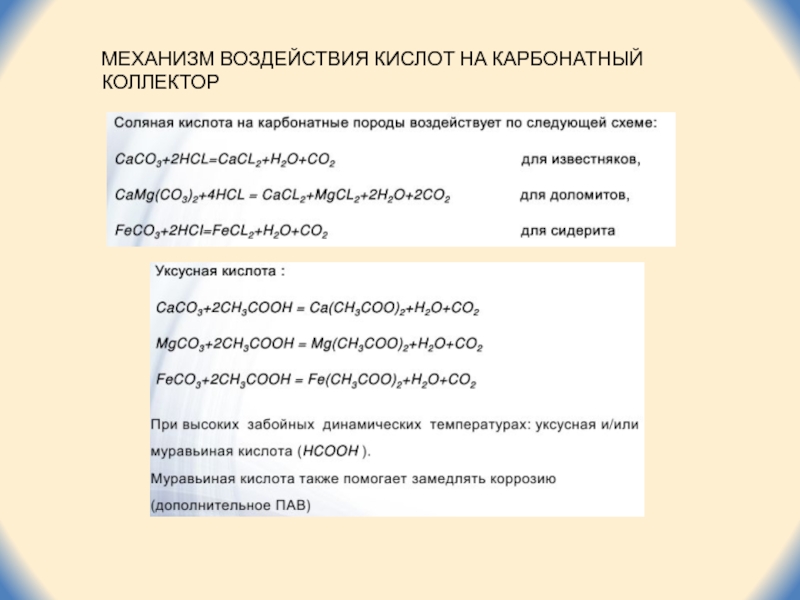 Слайд 24МЕХАНИЗМ ВОЗДЕЙСТВИЯ КИСЛОТ НА КАРБОНАТНЫЙ КОЛЛЕКТОР