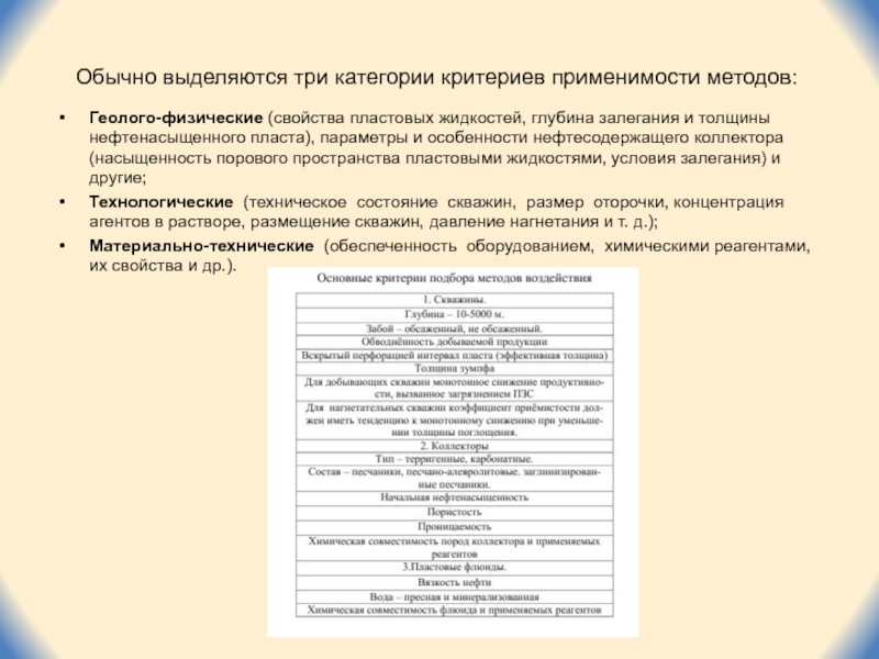 нефтесодержащего коллектора (насыщенность порового пространства пластовыми жидкостями, условия залегания) и другие;