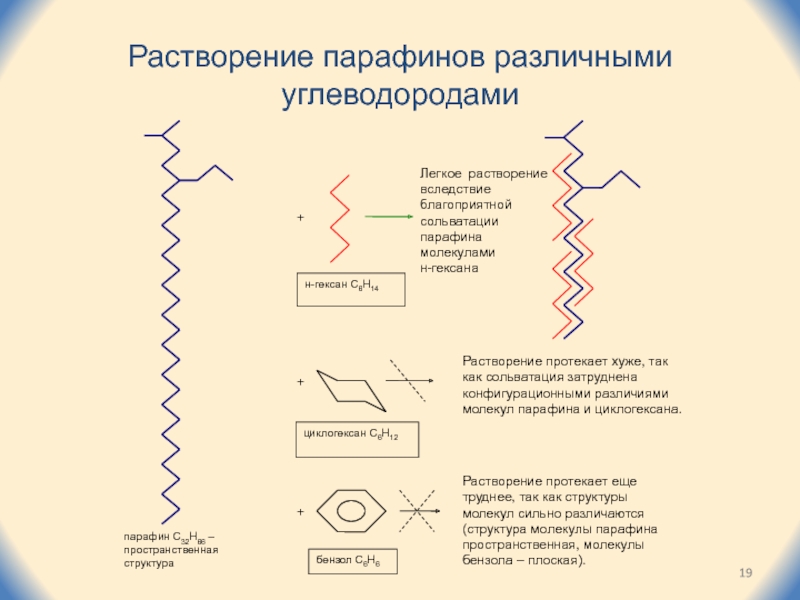 Слайд 19Растворение парафинов различными углеводородами