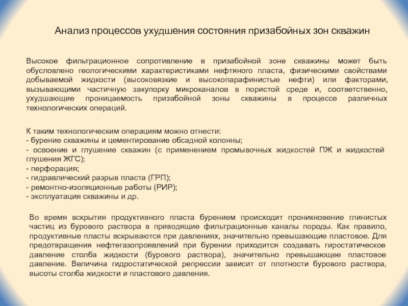 Слайд 6Высокое фильтрационное сопротивление в призабойной зоне скважины может быть обусловлено