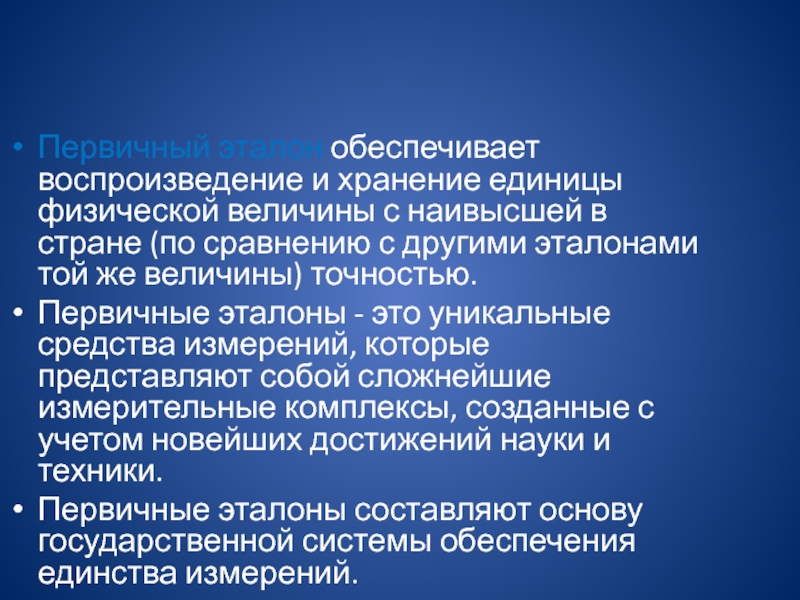 Первичные эталоны составляют основу государственной системы обеспечения единства измерений.