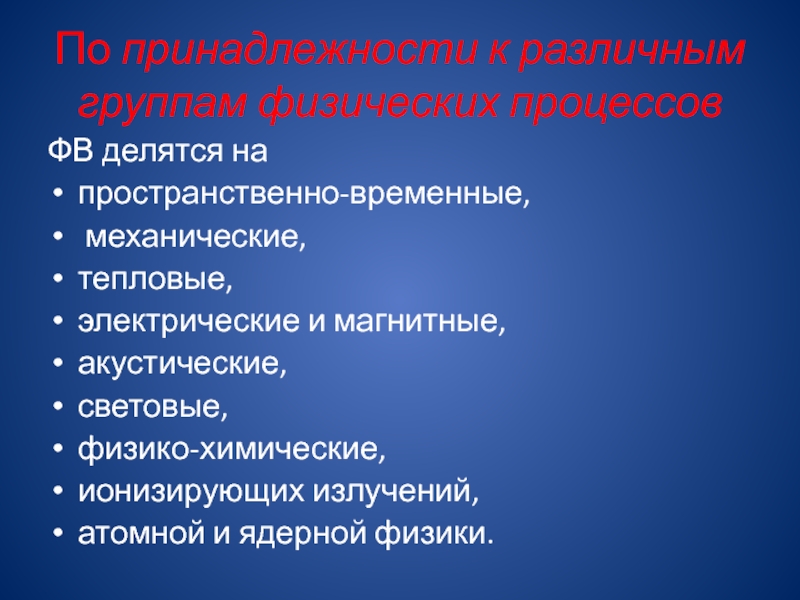 Слайд 8По видам явлений ФВ делятся на следующие группы: