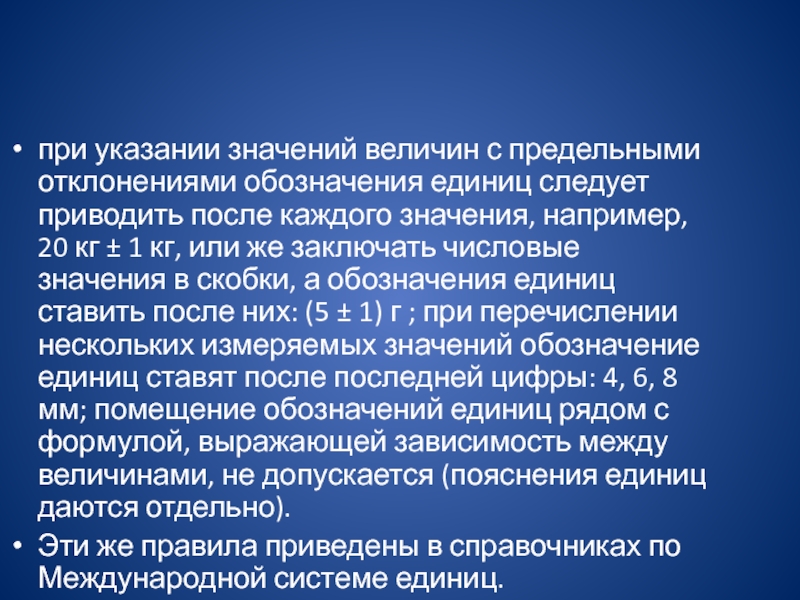 Слайд 56при указании значений величин с предельными отклонениями обозначения единиц следует