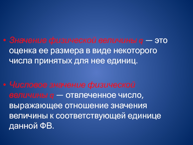 Слайд 13Значение физической величины q — это оценка ее размера в