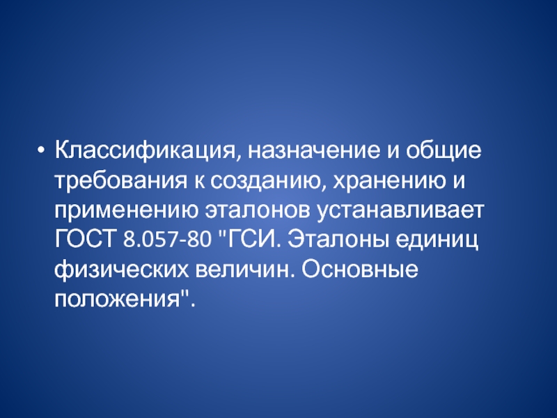 эталонов устанавливает ГОСТ 8.057-80 "ГСИ. Эталоны единиц физических величин. Основные