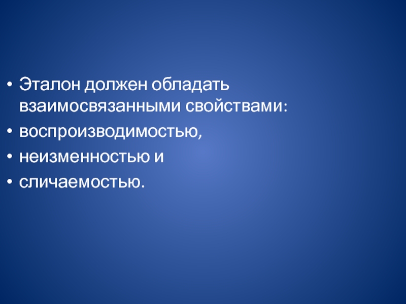 Слайд 62Эталон должен обладать взаимосвязанными свойствами:
