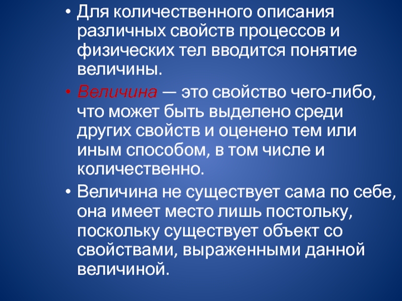 Слайд 2Для количественного описания различных свойств процессов и физических тел вводится