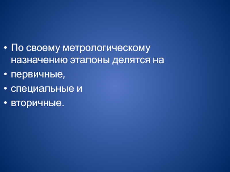 Слайд 66По своему метрологическому назначению эталоны делятся на
