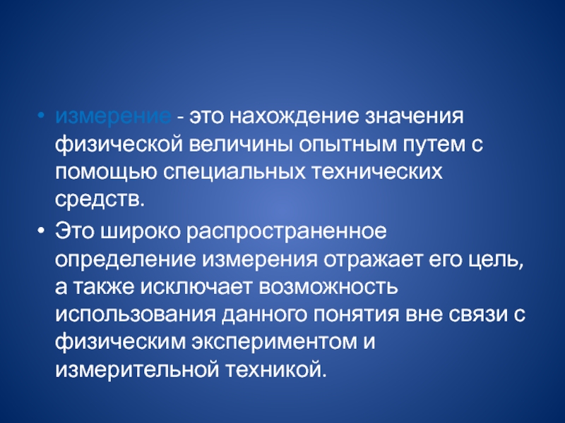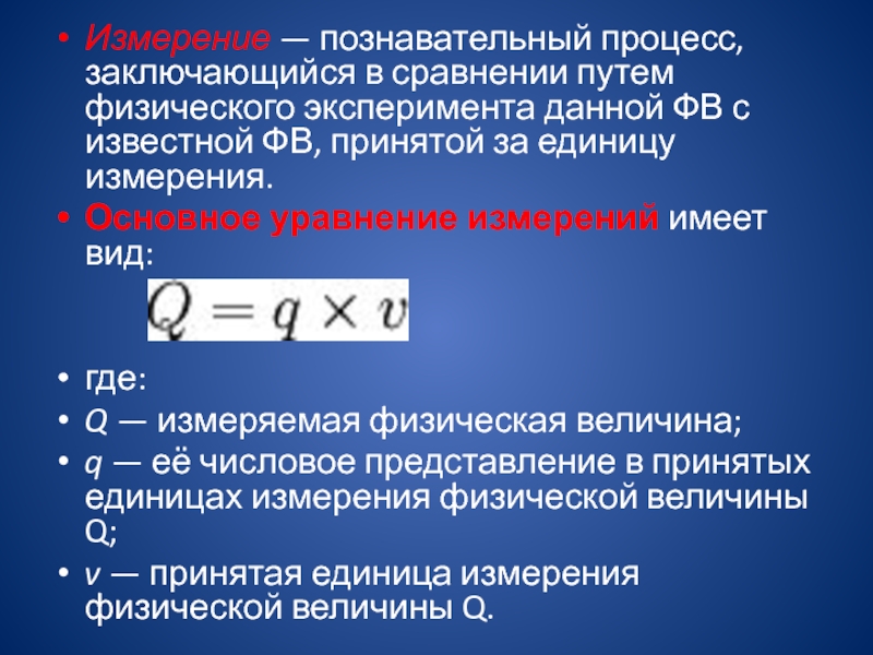 Слайд 14Измерение — познавательный процесс, заключающийся в сравнении путем физического эксперимента