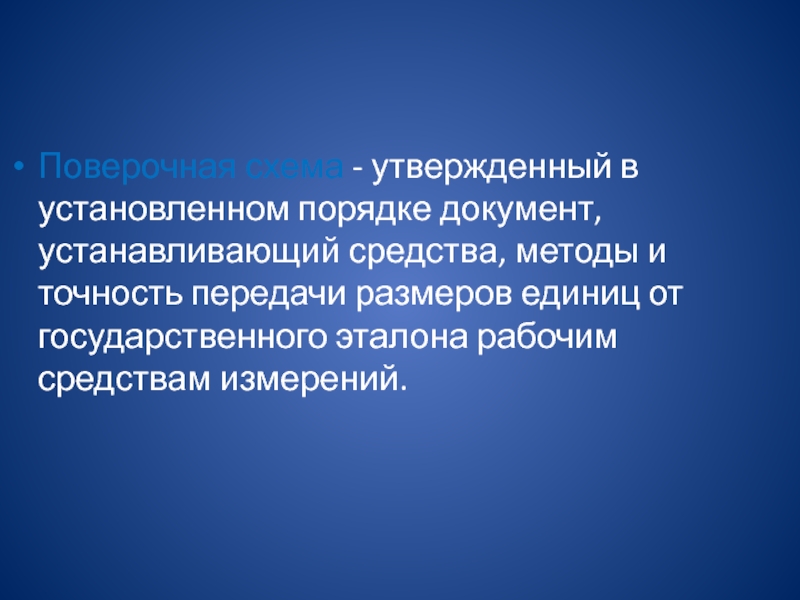 Слайд 80Поверочная схема - утвержденный в установленном порядке документ, устанавливающий средства,