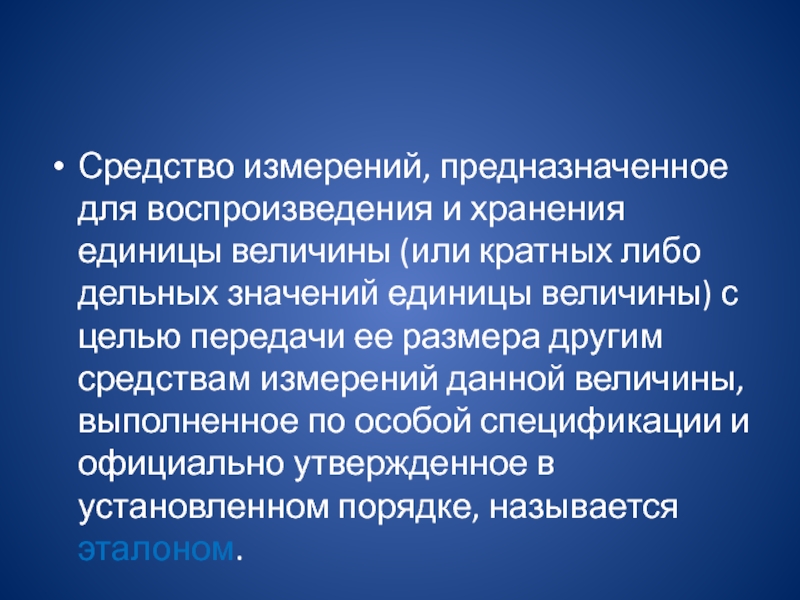 Слайд 59Средство измерений, предназначенное для воспроизведения и хранения единицы величины (или