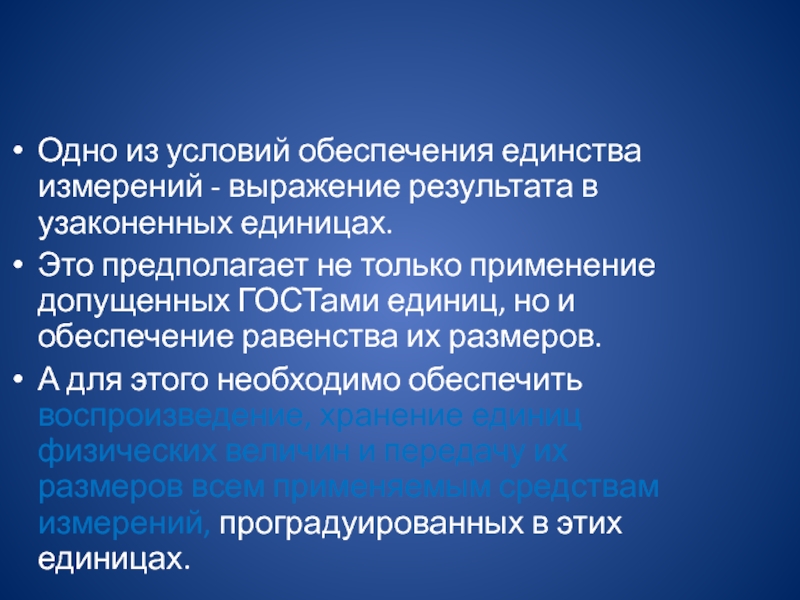 Слайд 58Одно из условий обеспечения единства измерений - выражение результата в