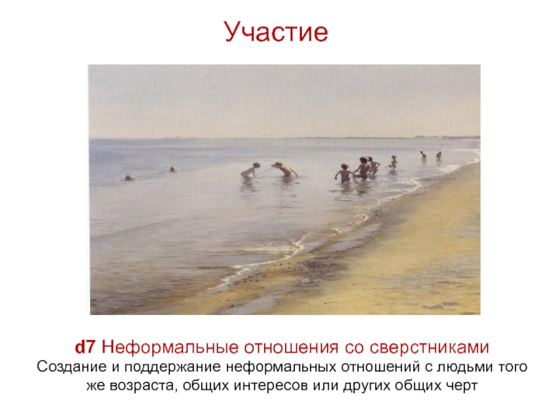 Слайд 13Активность и участие проявляются в жизненных эпизодах и повседневных жизненных