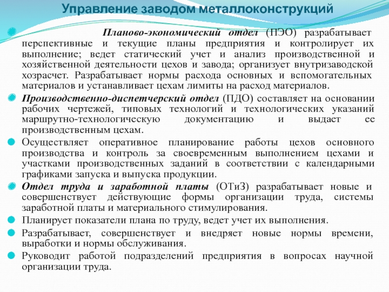 Планово-экономический отдел (ПЭО) разрабатывает перспективные и текущие планы