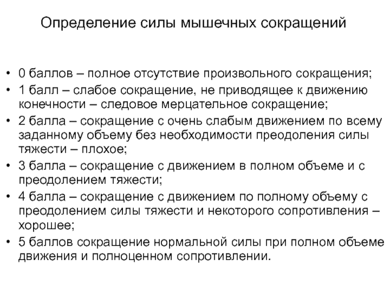 следовое мерцательное сокращение;2 балла – сокращение с очень слабым движением по всему заданному объему без необходимости преодоления силы тяжести – плохое;