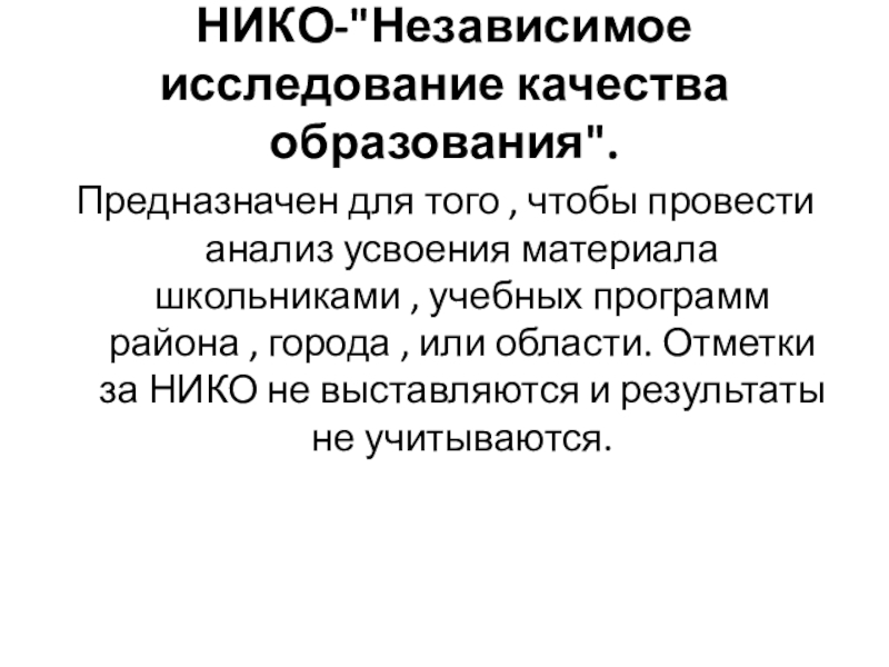 Слайд 12НИКО-"Независимое исследование качества образования".