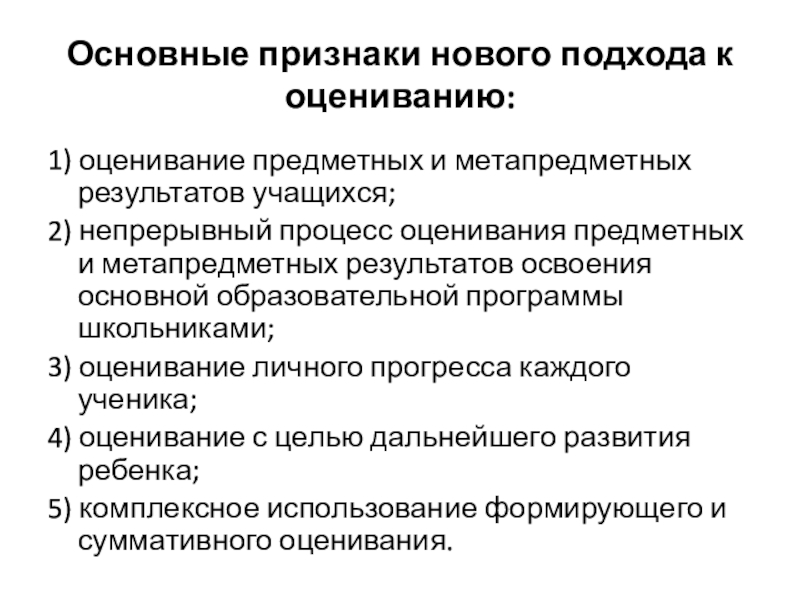 Слайд 17Основные признаки нового подхода к оцениванию: