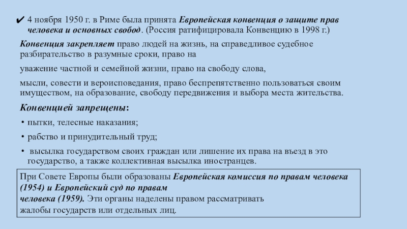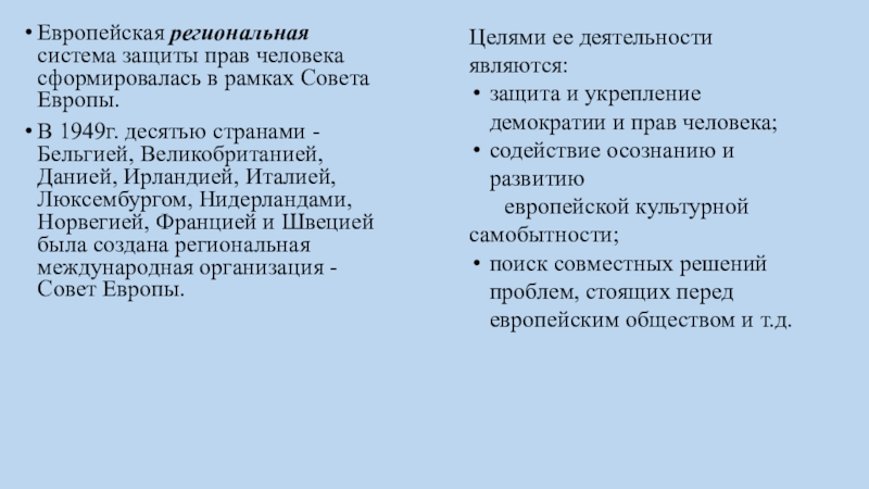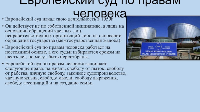 При Совете Европы были образованы Европейская комиссия по правам человека (1954) и Европейский суд по правам