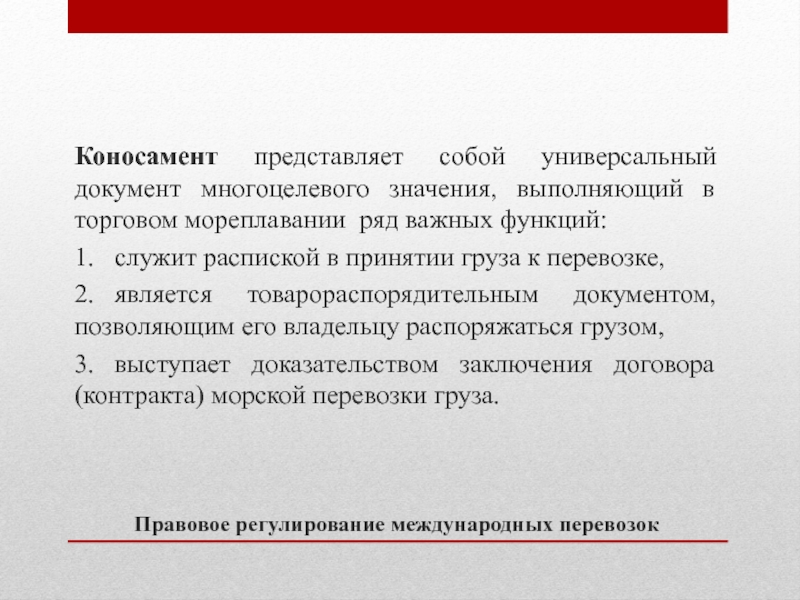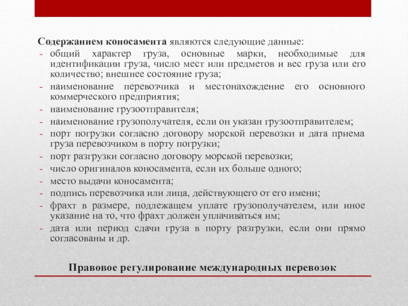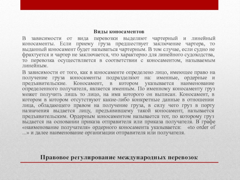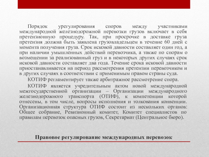 сообщения, устанавливающих требования к транспортным средствам, а также регулирующих отношения между субъектами международного транспортного права по поводу организации и осуществления перевозок грузов, пассажиров и багажа в международном сообщении.