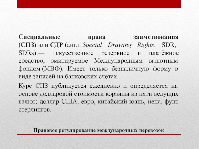 Специальные права заимствования (СПЗ) или СДР (англ. Special Drawing Rights, SDR,
