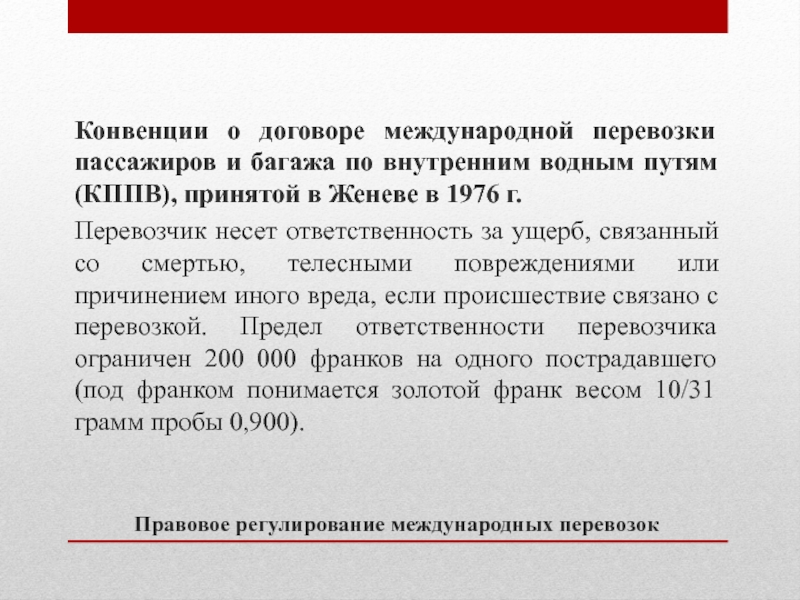багажа по внутренним водным путям (КППВ), принятой в Женеве в
