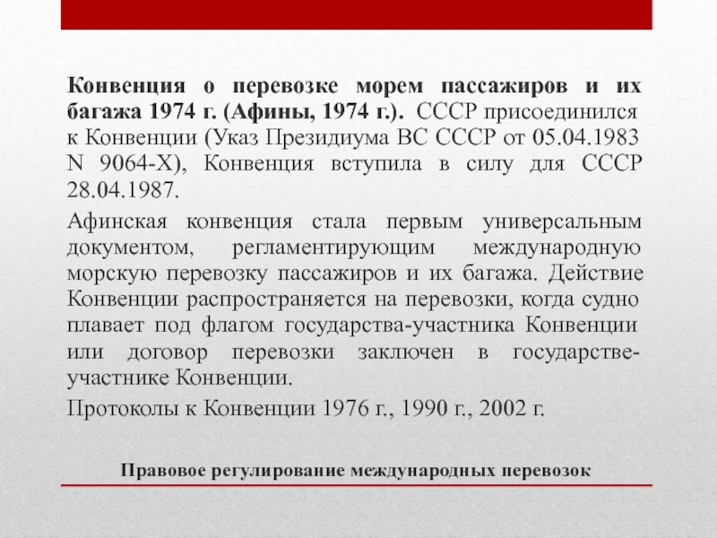 багажа 1974 г. (Афины, 1974 г.). СССР присоединился к Конвенции