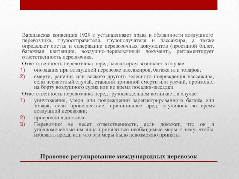 Варшавская конвенция 1929 года), дополненная в 1955 году Гаагским протоколом относительно изменения Конвенции об унификации некоторых правил международных воздушных перевозок, подписанной в Варшаве, 12.10.1929 года (далее – Гаагский протокол 1955 года),