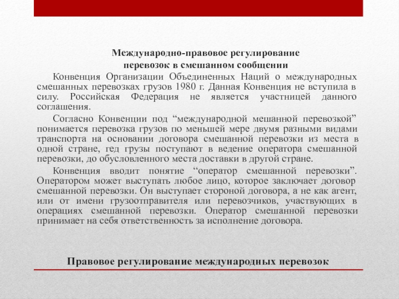 Объединенных Наций о международных смешанных перевозках грузов 1980 г. Данная