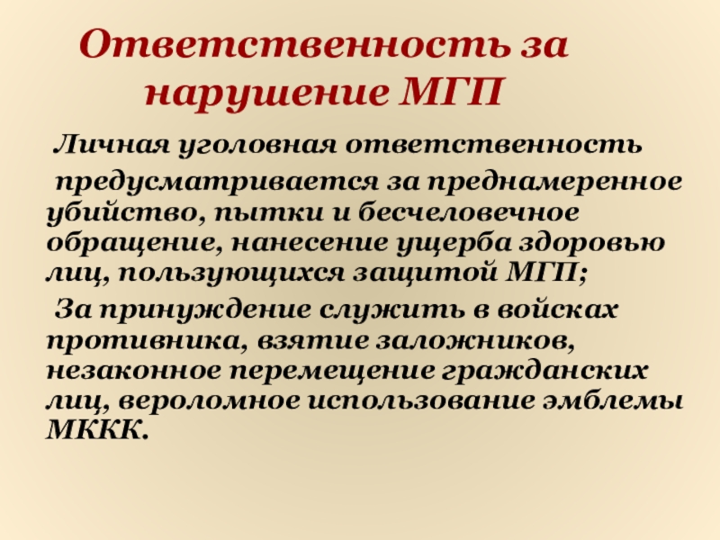 Слайд 20Ответственность за нарушение МГП